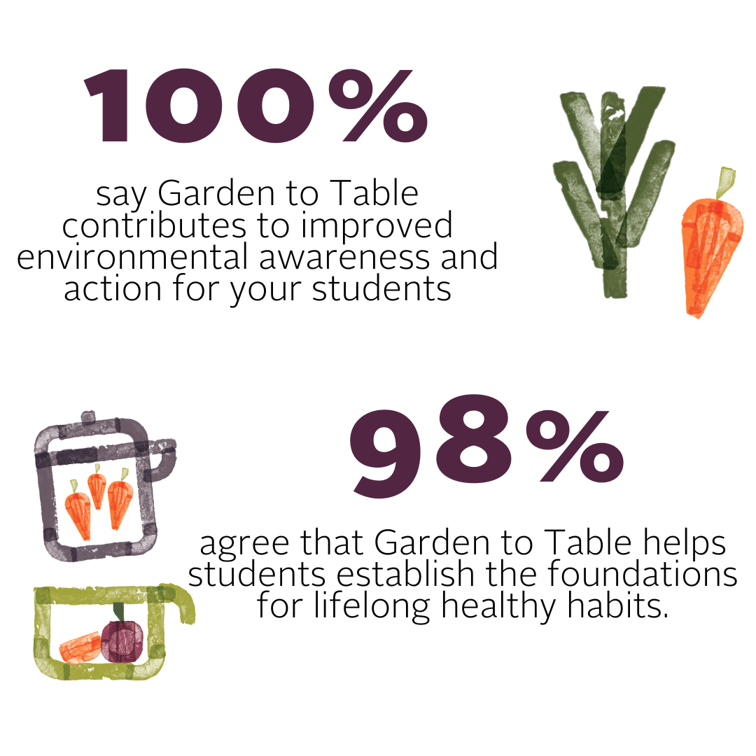 Garden to Table was inspired by Stephanie Alexander’s Kitchen Garden Program in Australia. This 2019 research by the University of Melbourne investigated primary school children’s knowledge, attitudes and behaviours related to food when participants in the programme became independent young adults.