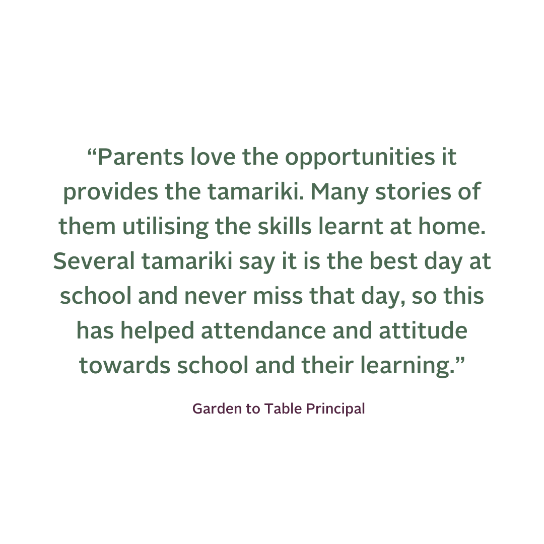 Here’s what principals at Garden to Table Schools told us about the programme’s positive impacts in 2025:
